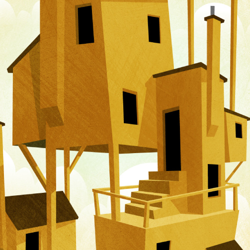 "High Homes" 2011 Digital collage There are tons of benefits to living in homes in the sky. I can't remember any of them right now, but trust me there's lots.