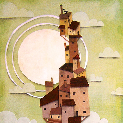 "Strucutred Living" 2009 13x25, Mixed media on wood Note the rocking chair at the top. That's my seat. That's where I watch the toils of the world below, rocking the days away. Detail: