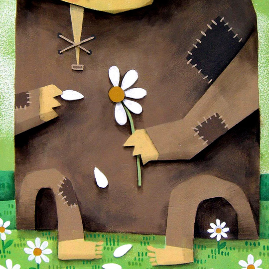 As I pulled the final petal from the poor mutilated flower, my worst fears came true. "She loves me not" echoed through my mind like an annoying yet catchy song. But this time, instead of watering the remaining flowers with my tears, I vowed to keep at it, pulling petal after petal from the beautiful flowers until I found the love I longed for admist their naked stumps.